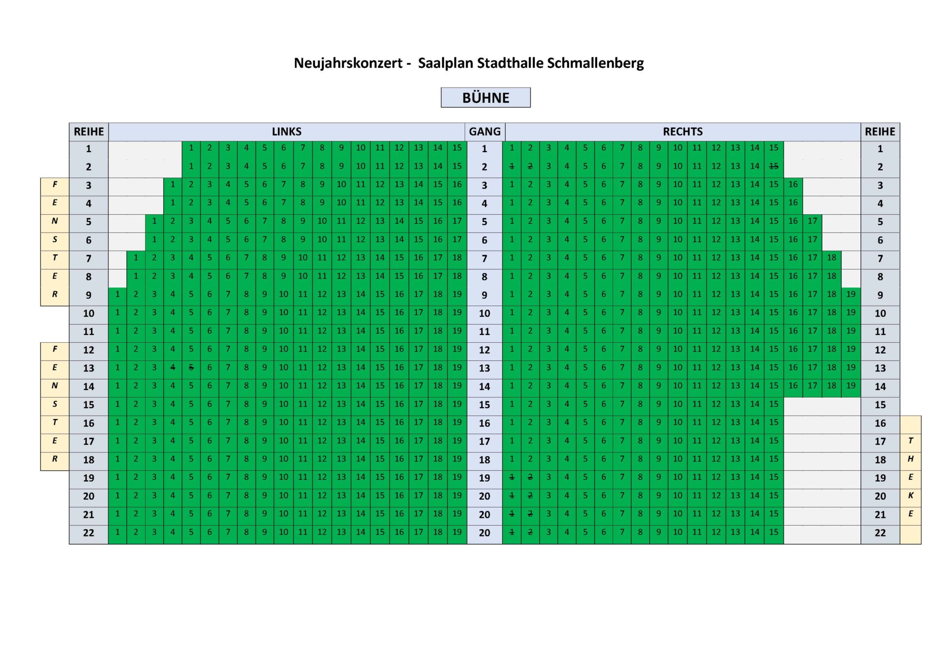 Eintrittskarten können zum Preis von 20,00 € auf dieser Website bestellt werden und sind an den bekannten Vorverkaufsstellen (Touristikzentralen in Schmallenberg, Paul-Falke-Platz 6 und Bad Fredeburg, Am Kurhaus 4). Ermäßigte Karten zum Preis von 18 Euro gibt es für Mitglieder der Kulturellen Vereinigung, Schwerbehinderte ab 50%, Inhaber/innen von Schmallenberger Gästekarte und Team-Card Touristik. Schüler/innen, Auszubildende und Studierende zahlen 10 Euro.